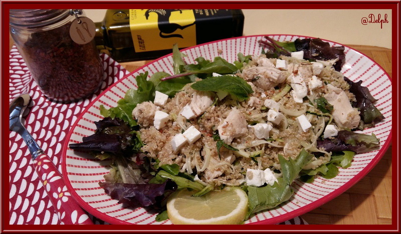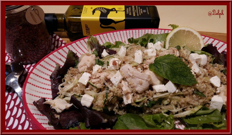Voici une délicieuse salade à base de quinoa, la menthe apporte beaucoup de fraicheur à cette entrée. Si vous n’aimez pas le quinoa vous pouvez le remplacer par du boulghour.