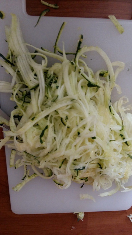 - Laver votre courgette puis l’éplucher puis la couper en forme de spaghetti à l’aide d’un taille légume.