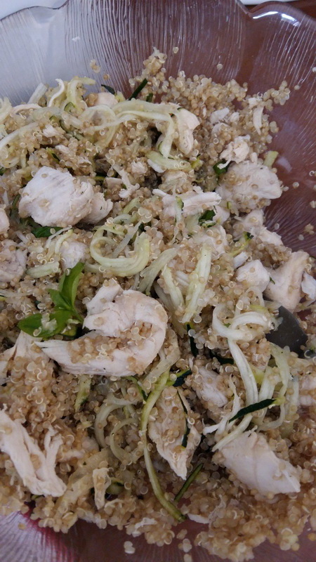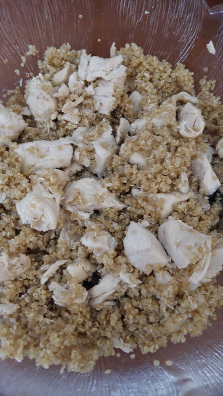 - Faire bouillir l’eau avec 1 c à c de sel dans une casserole, à ébullition, mettre le quinoa et faire cuire 10 minutes. Laisser refroidir une fois cuit et réserver.