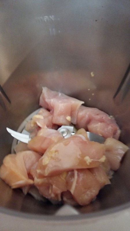 - Mettre 1 c à s d’huile d’olive et le poulet coupé en lanières puis faire chauffer 5min/115°C/ couteau inversé/Vit mijotage, à la sonnerie, ouvrir puis mélanger pour retourner le poulet avec la spatule saler et poivrer et finir la cuisson pour 4min/115°C/couteau inversé/vit mijotage. Selon la grosseur de vos lanières, regarder si votre poulet est assez cuits sinon poursuivre 1 ou 2 minutes la cuisson. A la sonnerie, si votre poulet à rendu du jus, l’égoutter à l’aide du panier cuisson. Réserver.