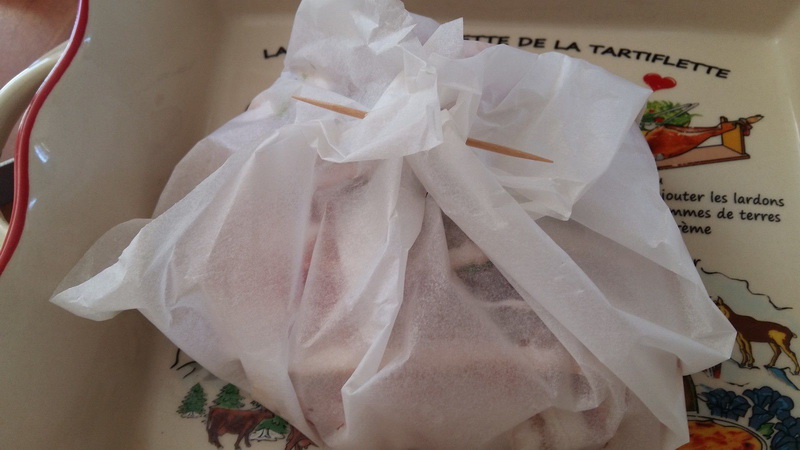 - Refermer votre papier sulfurisé à l’aide d’un cure dent de manière à faire une papillote.