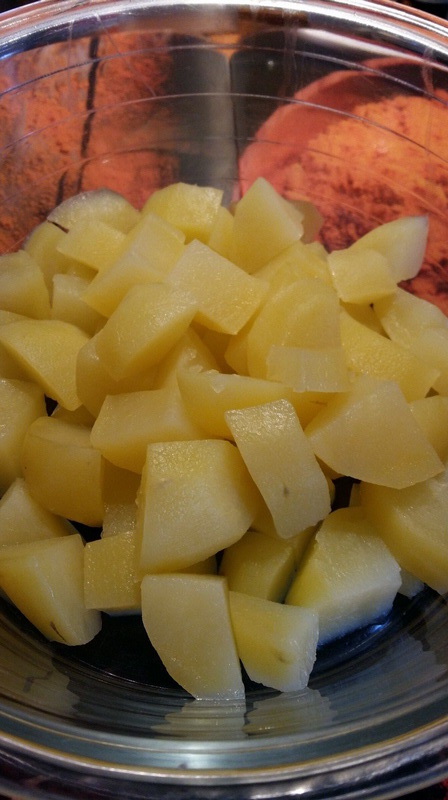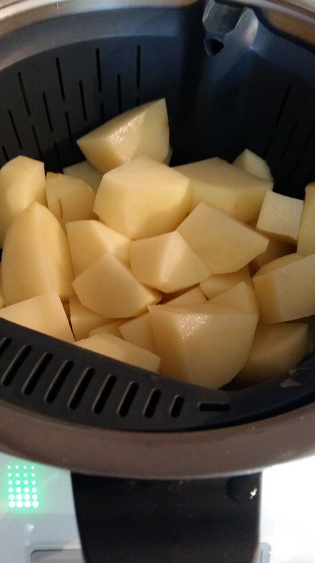 1. Éplucher les pommes de terre et coupez-les en petits dés puis déposez-les dans le panier de cuisson.