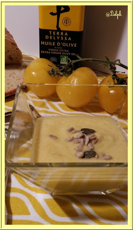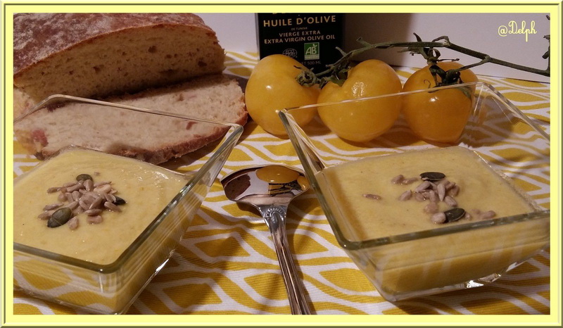 J’ai jeté mon dévolu sur ce gaspacho tout jaune, trouvé sur le site 750g, j’avais déjà réalisé un gaspacho normal et nous nous étions régalés.