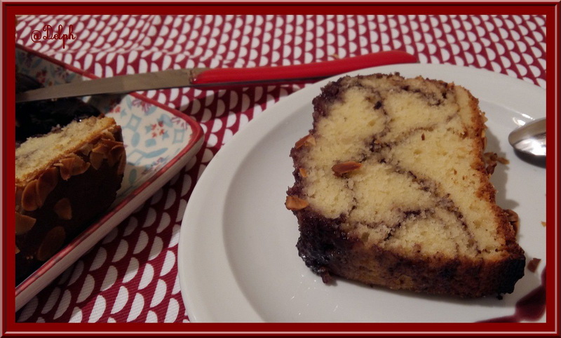Ce cake est très bon, les rayures sont moins nets que celui de Martine mais je pense que mon coulis n’était pas assez épais.