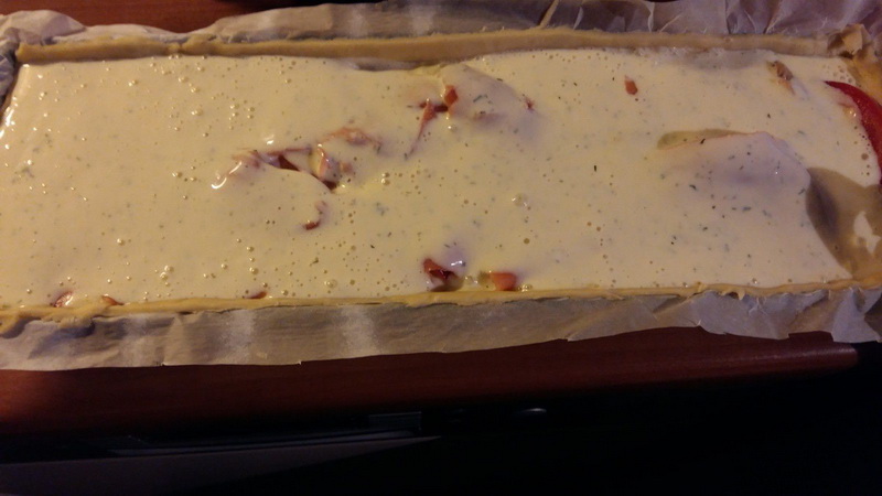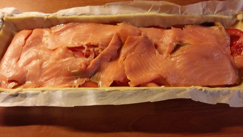 - Verser le mélange crème, œufs sur la truite fumée.