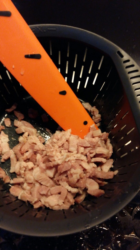 - Faire revenir vos lardons dans une poêle anti adhésive, enlever le maximum de graisse, réserver.