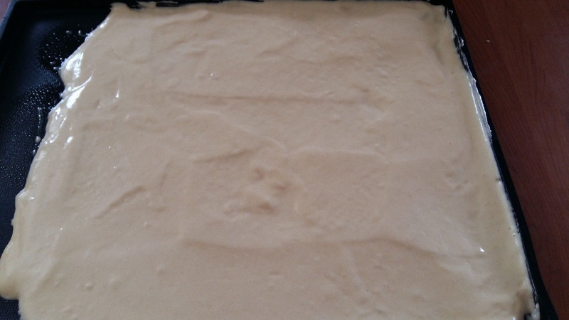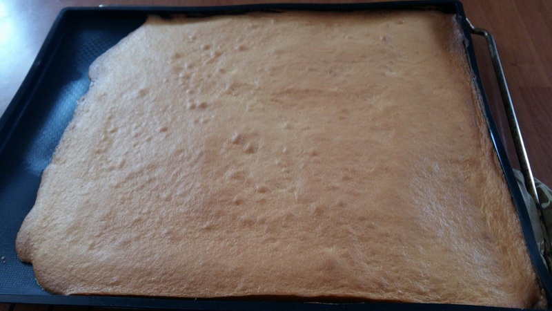 - Mélanger délicatement avec la spatule, verser sur une plaque à génoise puis enfourner pour 20 minutes, puis laisser refroidir à température ambiante.