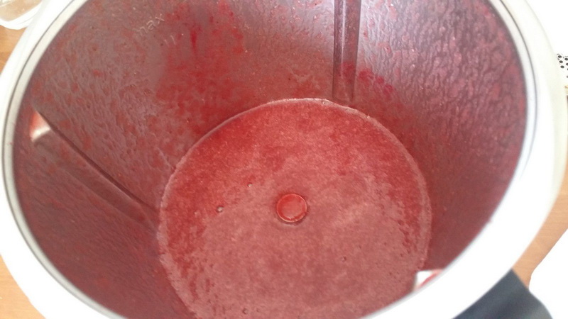 - Mettre la purée de fraise et le sucre dans le bol puis faire chauffer 3min/90°C/Vit2.