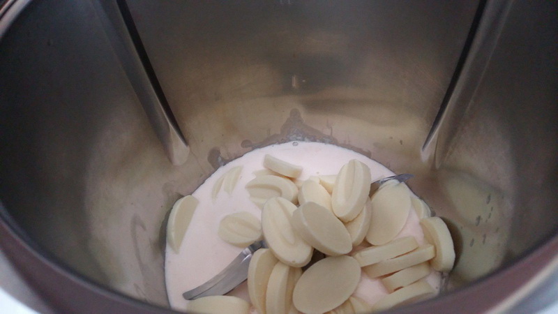 - Ajouter le chocolat blanc et mixer 3min/Vit2