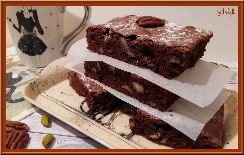 Comme Claudine j’aime beaucoup les pistaches et les noix de pécan , ton brownie me plaît beaucoup car je ne pâtisse guère le chocolat mais j’aime beaucoup.