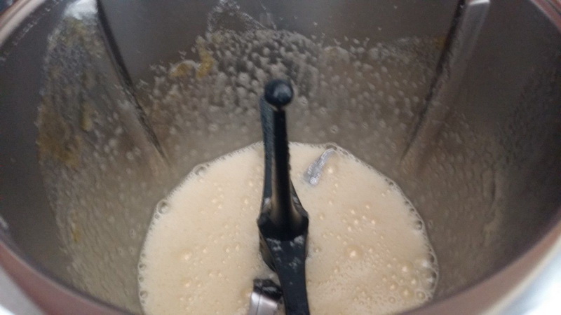 - Insérer le fouet dans le bol de votre Thermomix puis y mettre les œufs et le sucre, puis fouetter 1min/Vit3, toujours avec le fouet ajouter la farine et mélanger