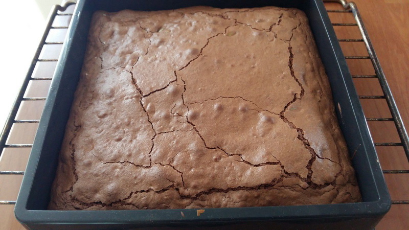 Voici un petit Brownie que j’avais repéré depuis longtemps sur un de mes livres de cuisine dédié au chocolat. Il est extra, j’ai juste divisé la dose de sucre par deux.