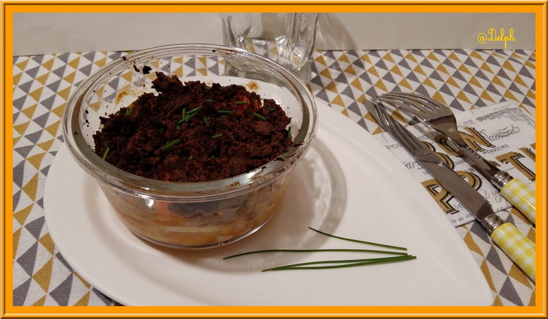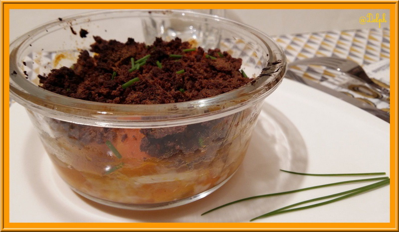 Voici un petit crumble très facile à réaliser, j’ai choisi de ne pas mettre de viande, pour avoir un plat végétarien. Mais pour les carnivores, vous pouvez ajouter un peu de chorizo, ou du bacon.