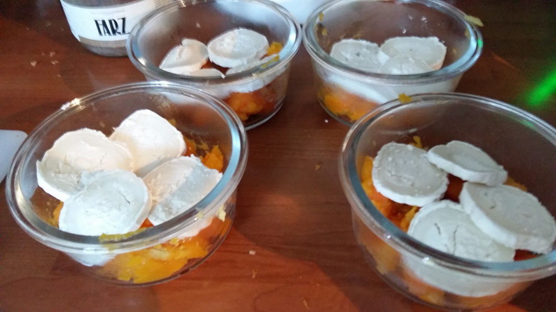 - Émietter votre Farz à l’aide d’une fourchette, puis parsemer une couche sur les légumes.