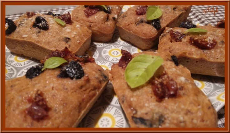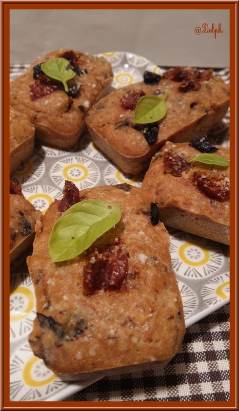 - Verser cette pâte dans des petits moules à cake beurrés, parsemer du reste d’olives, de tomates et de parmesan enfourner 20 minutes.