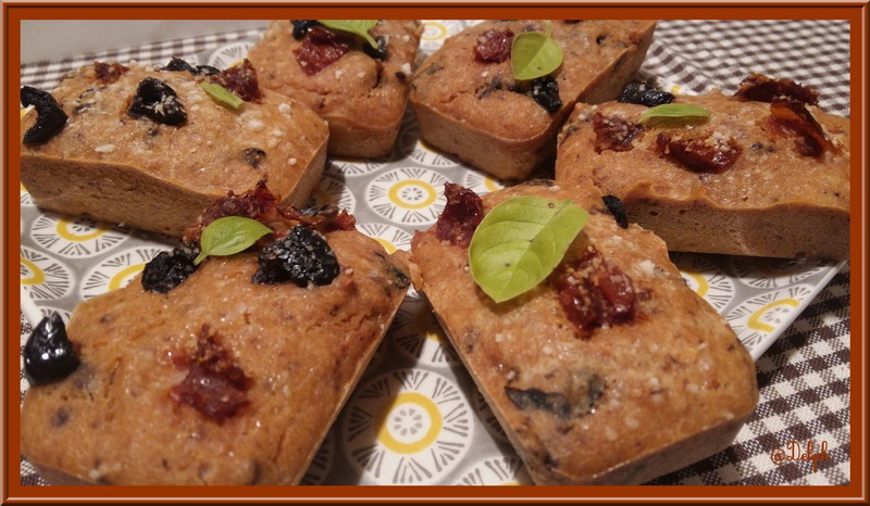 - Verser cette pâte dans des petits moules à cake beurrés, parsemer du reste d’olives, de tomates et de parmesan enfourner 20 minutes.