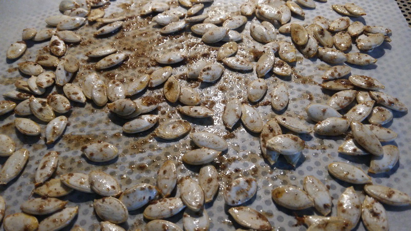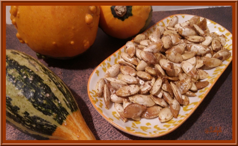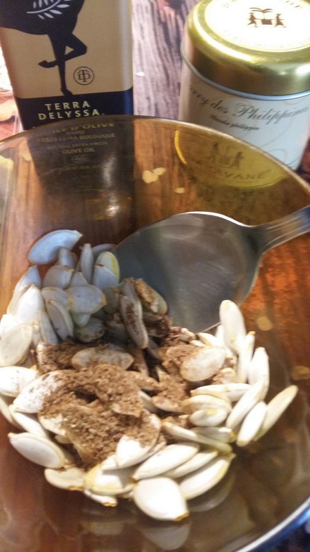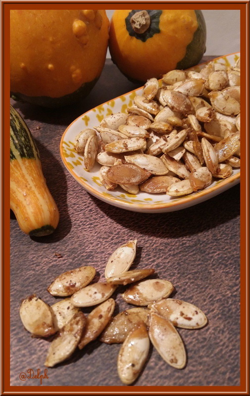 Lorsque j’ai vu la recette de « Diet et Délices« , j’ai craqué, j’ai trouvé que c’était une super bonne idée d’utiliser les grosses graines de nos citrouilles..On évite le gâchis, on fait des économies, et on se régale, allez hop en cuisine pour vous partager cette petite gourmandise salée.
