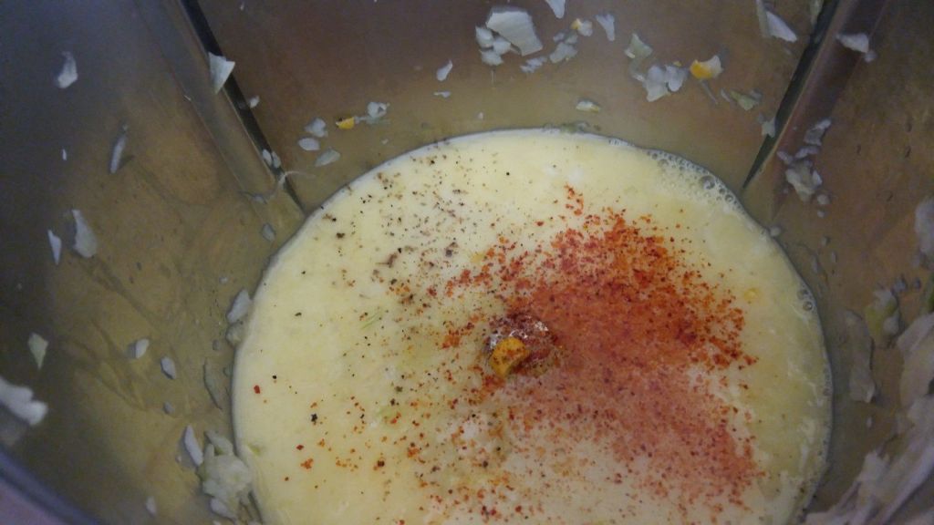 - Ajouter le lait, le piment, le bouillon, le sel et le poivre puis faire revenir 15min/90°C/ vit mijotage sans gobelet.