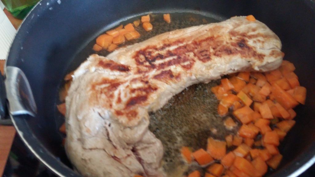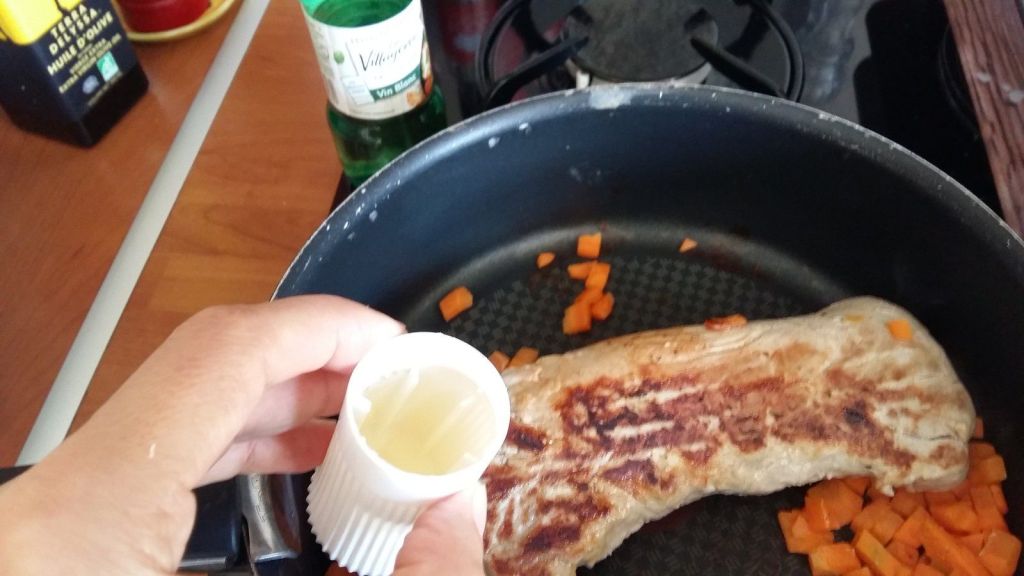 - Laver, éplucher votre carotte et la couper en petits dés, la faire revenir avec une noix de beurre dans un faitout. Poivrer votre viande puis la mettre dans votre cocotte, la faire cuire environ 15 minutes de chaque côté. Déglacer avec le vin blanc.