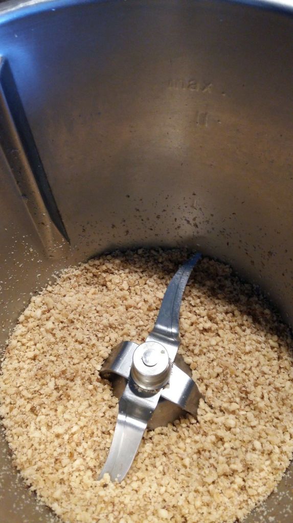 - Mettre vos noix dans le bol puis mixer 10sec/Vit5, réserver la poudre de noix, inutile de rincer le bol.