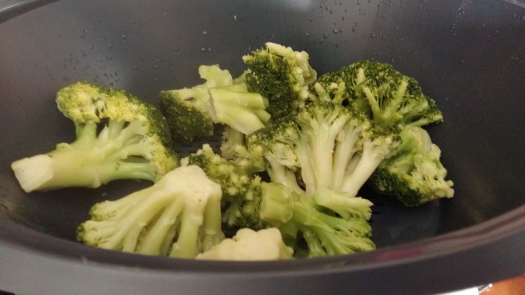 - Cuisson du Brocolis: Laver et détailler vos bouquets de brocolis, les déposer dans votre plateau Varoma, mettre 500g d’eau dans le bol, puis programmer 20 min/Varoma/vit mijotage.