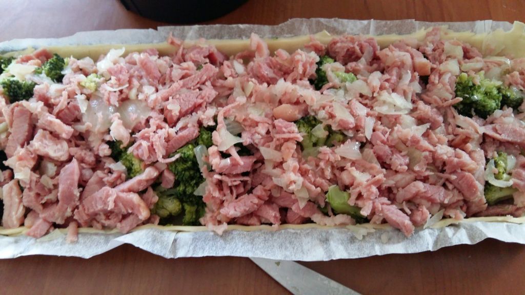- Pendant ce temps, disposer votre pâte dans votre moule, la piquer à l’aide d’une fourchette, puis à la sonnerie du Thermomix, enlever votre brocolis pour le déposer sur la pâte.