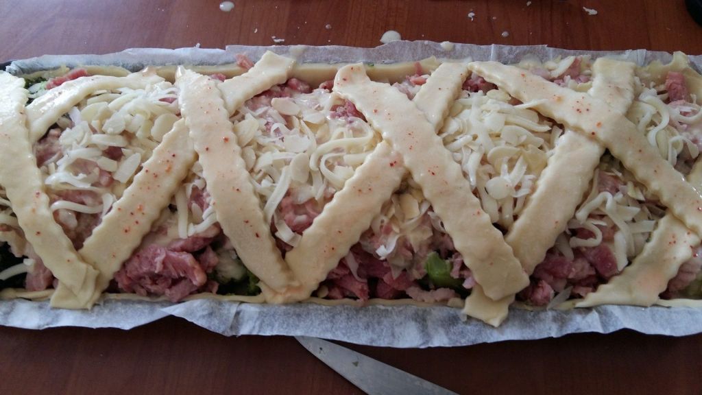 - Avec le reste de pâte feuilletée j’ai fait des petits croisillons que j’ai badigeonné de lait et de piment d’Espelette.