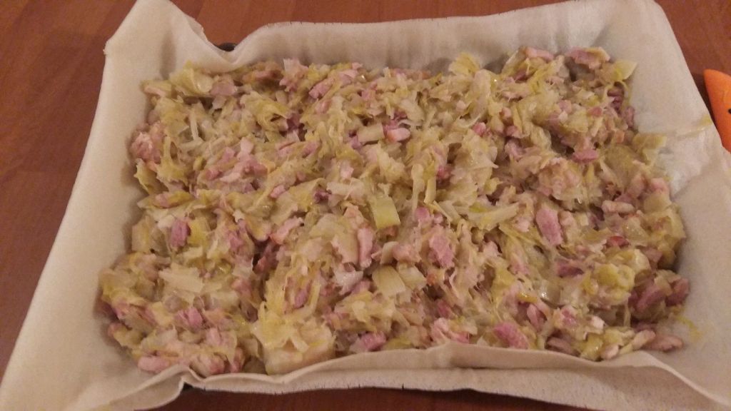 - En fin de cuisson enlever le maximum de jus rendu par les poireaux et les lardons.