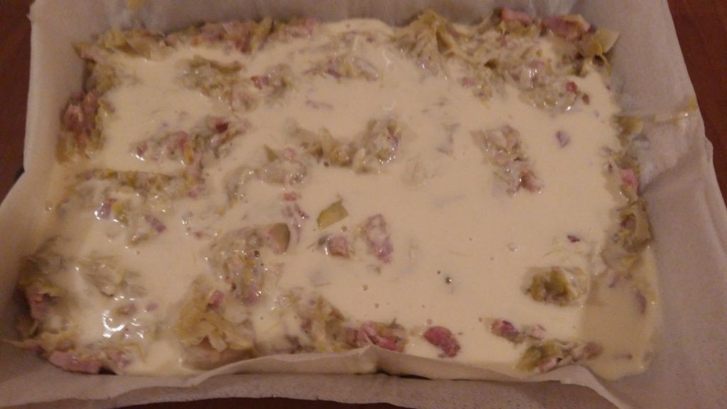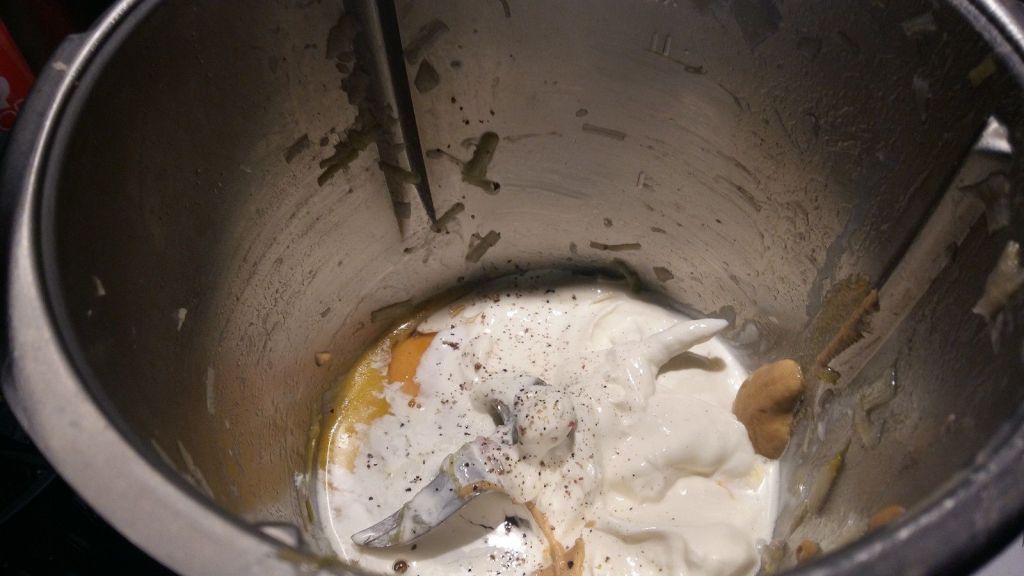 - Mettre dans le bol, les œufs la crème fraîche, le poivre et la moutarde puis mélanger 30sec/Vit4, verser cette préparation sur les poireaux.