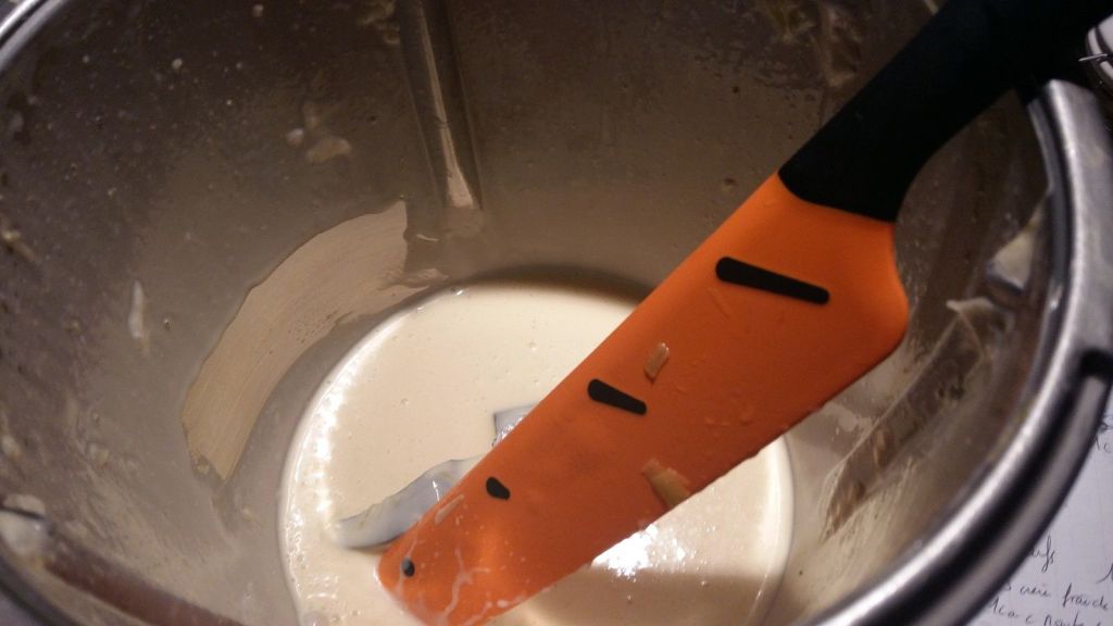 - Mettre les oignons coupés en deux dans le Thermomix et mélanger 5 sec/vitesse 5. Racler ensuite les parois du bol avec la spatule.