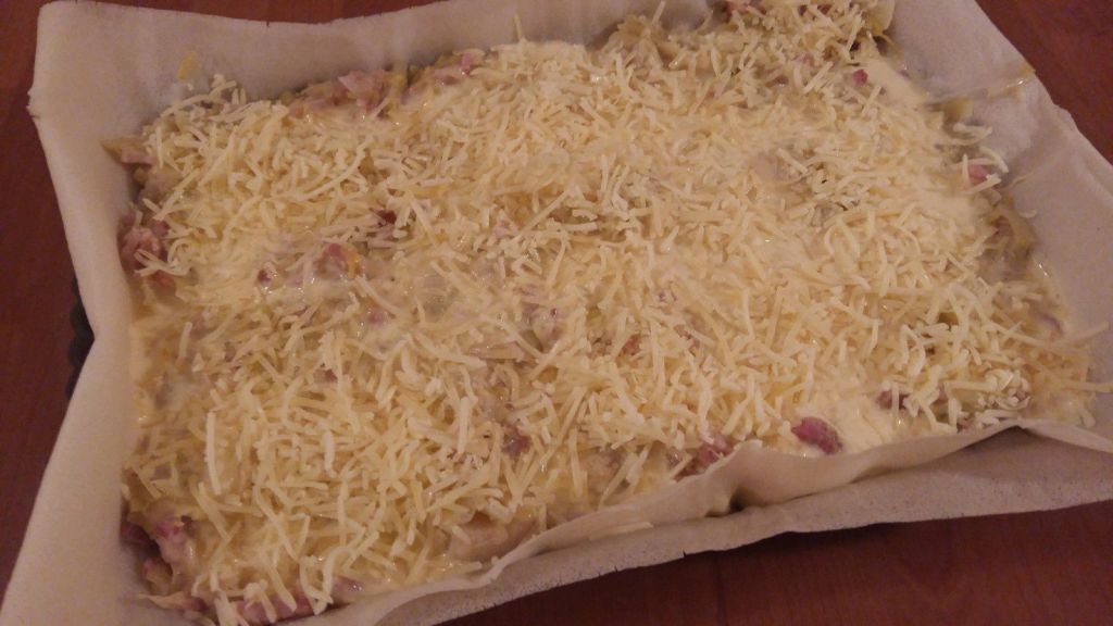 - Disposer sur les feuilles de brick, mes poireaux, couvrir avec votre appareil puis parsemer de Comté râpé.