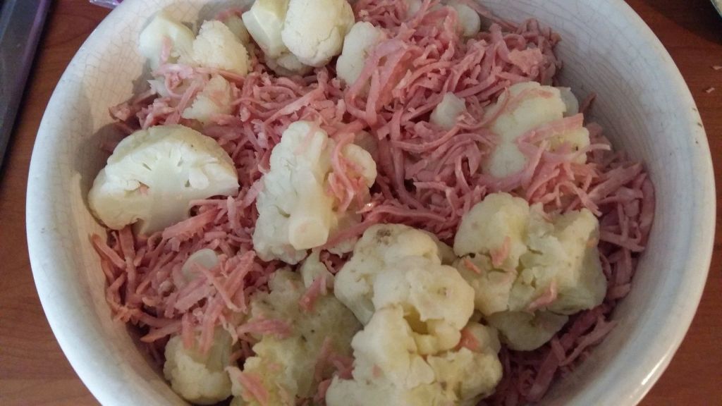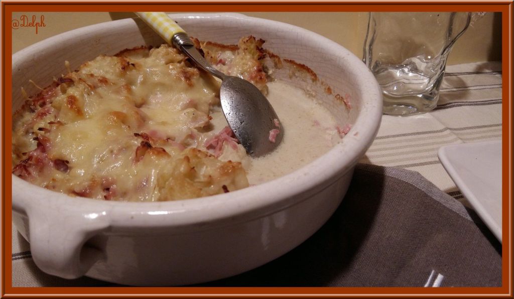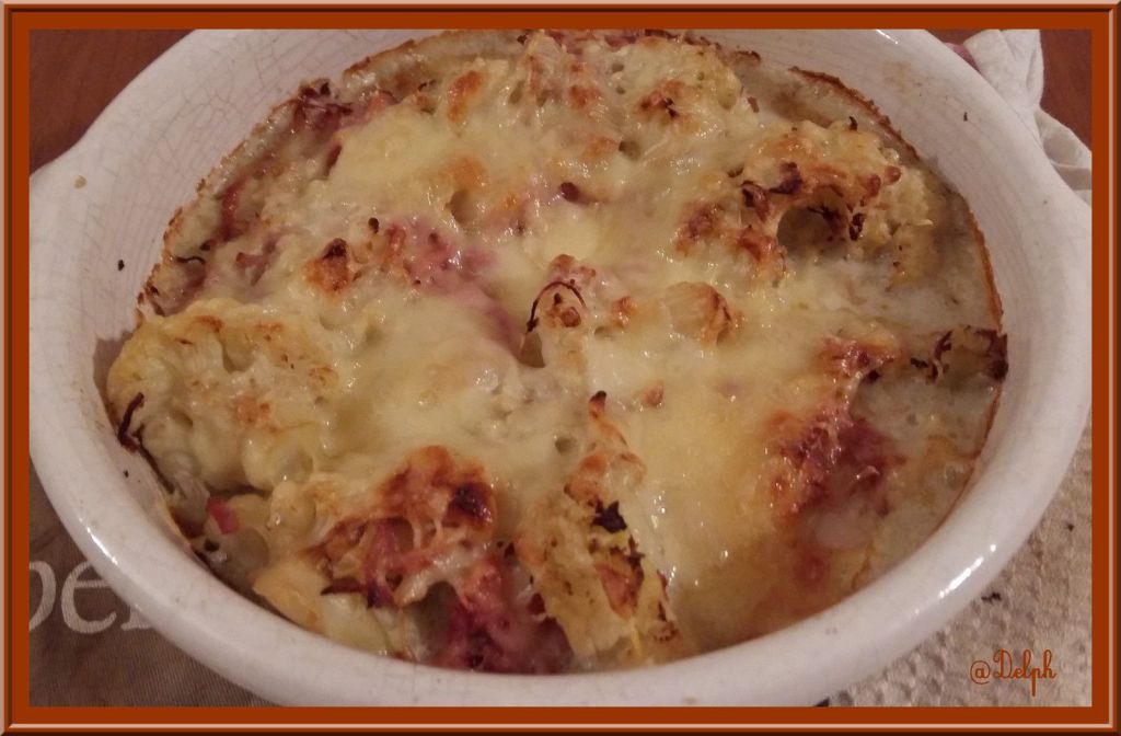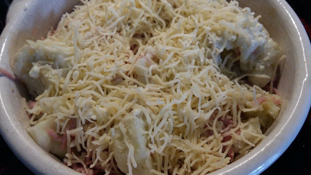 - Lorsque votre chou est prêt le déposer dans votre moule à gratin, ajouter le jambon râpé, mélanger puis recouvrir de la sauce au roquefort, parsemer de Comté râpé.