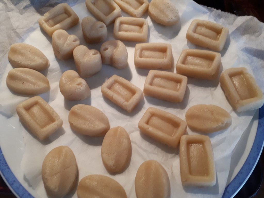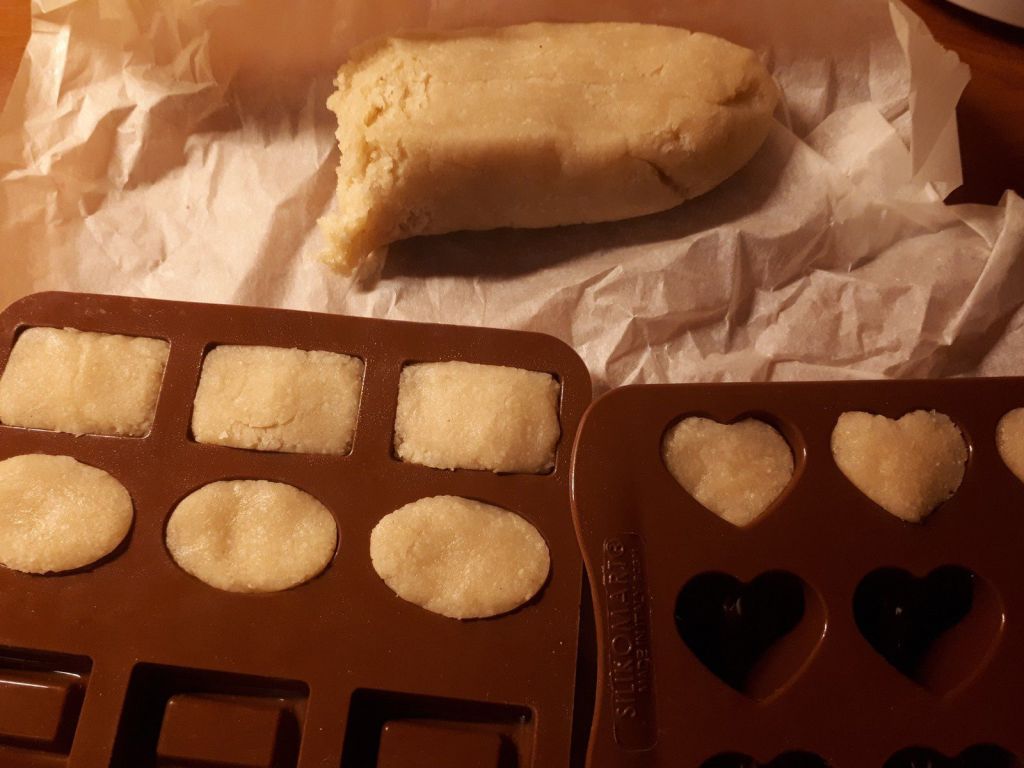 - Réaliser votre pâte d’amande, j’ai utilisé mes plaques en chocolat en silicone pour faire différentes formes. Les placer au réfrigérateur le temps de tempérer votre chocolat.