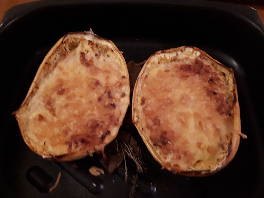 - Enfourner pour 15minutes environ (quand la courge est gratinée, c’est prêt).