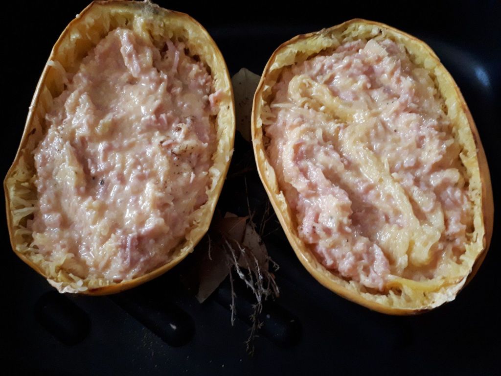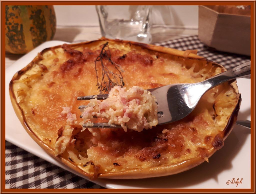 Voici une recette que j’ai trouvée chez Chef dodo, cela faisait longtemps que j’avais envie de cuisiner cette courge, alors voilà c’est fait. J’ai juste fait cuire ma courge au four et non au Cookéo et j’ai ajouté un peu de jambon. Cette courge est assez fade mais cuisinée de cette façon c’est parfait.