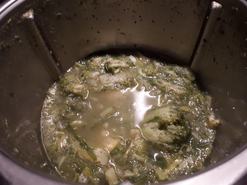 3. Mettre tous ces légumes dans le bol. Ajouter le cube de bouillon, et 500 grammes d’eau.