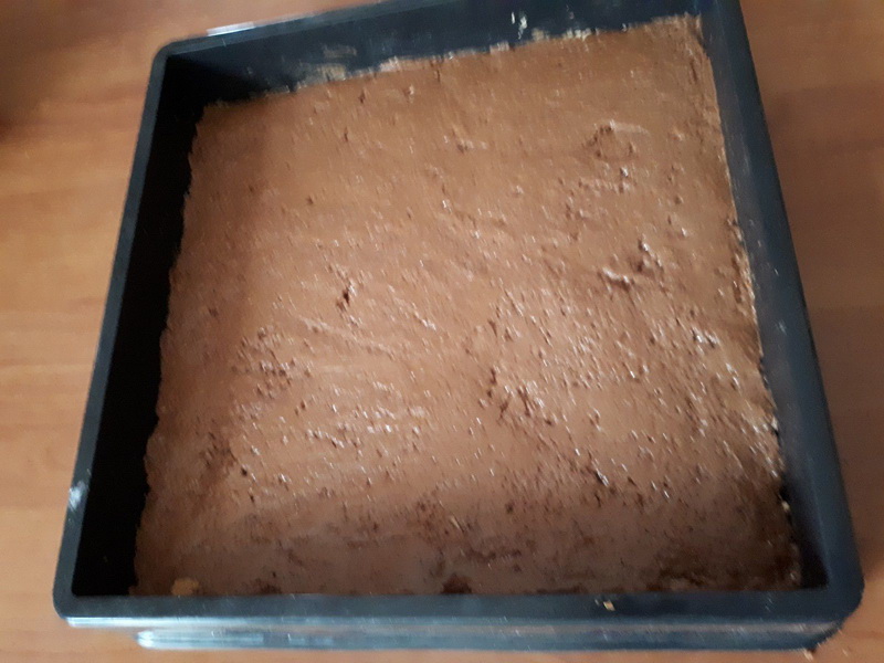 - Étaler le pralin croquant sur le biscuit dacquoise laissé dans le moule.