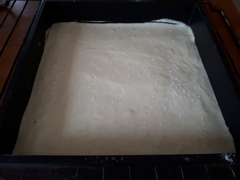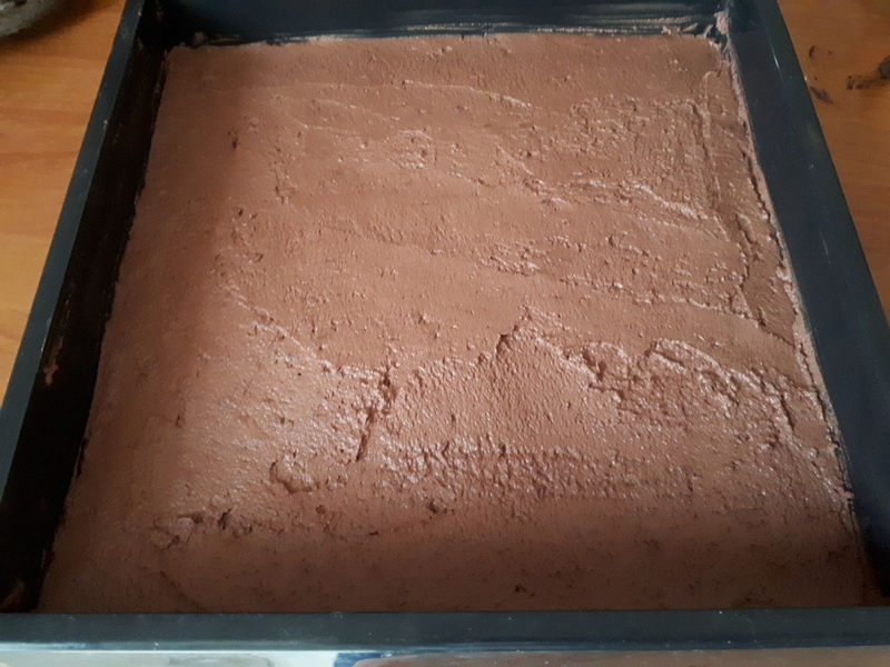 - Étaler la préparation dans votre moule, saupoudrer la surface de sucre glace.