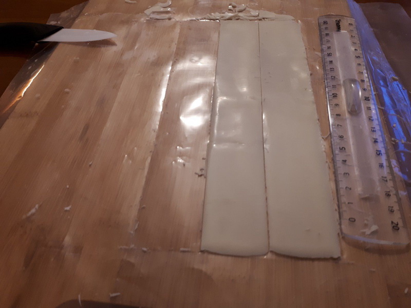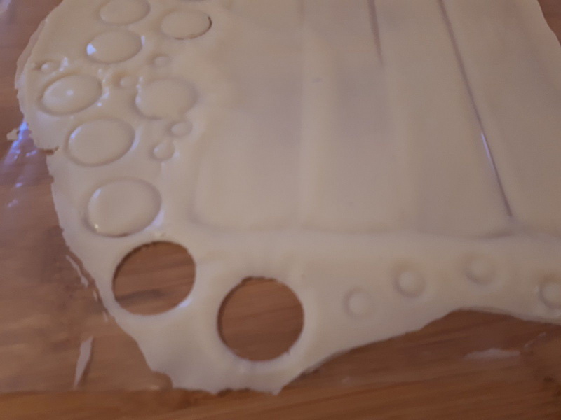 - J’ai utilisé des douilles de différents diamètres pour faire mes cercles, et un règle avec un couteau bien pointu pour faire les bords.