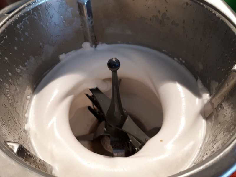 - Monter la crème liquide en crème fouetté pour qu’elle soit souple et onctueuse., j’utilise mon speedy chef,