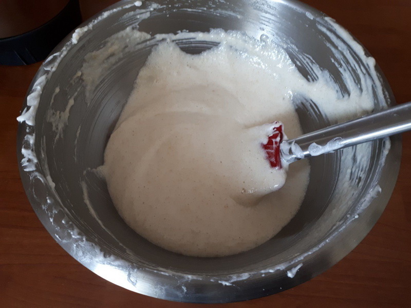 - Monter les blancs en neige ferme avec le sucre semoule et roux.