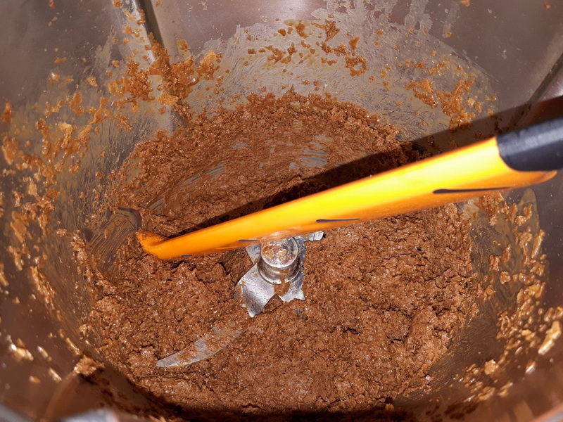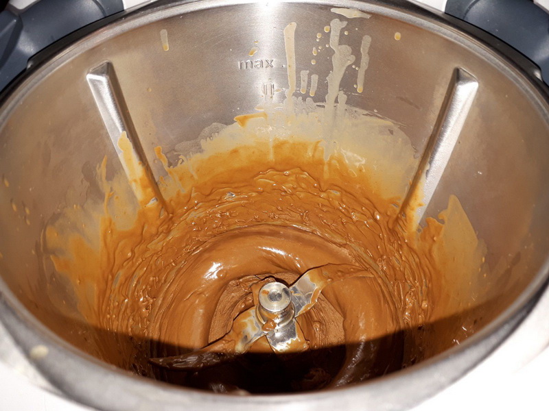 - Mettre le praliné dans le bol puis faire chauffer 2min/60°C/vit2, ajouter les crêpes dentelles puis mixer 40sec/Vit3.