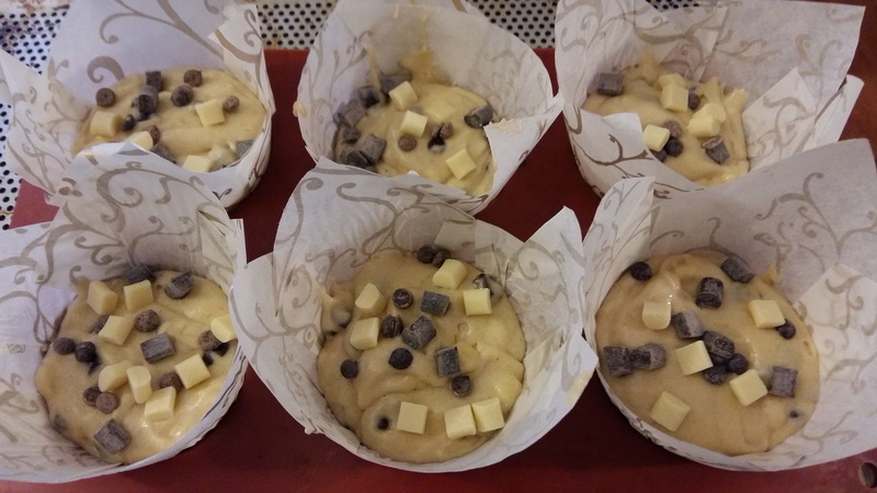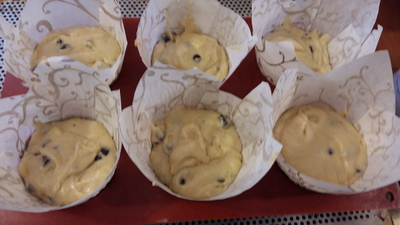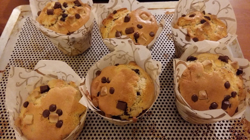 Cela faisait longtemps que je n’avais pas réalisé de muffins pour le goûter et comme il me reste pas mal de pépites de chocolat je me suis décidée à faire une petite gourmandise.