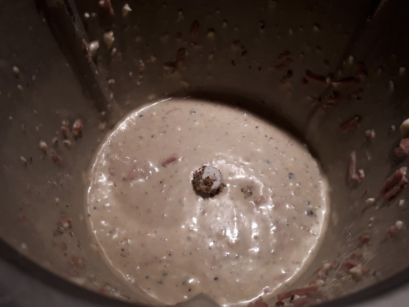 - Ajouter le fromage de chèvre , puis mélanger 15sec/vit 4, incorporer le jambon râpé et l’origan puis mélanger à nouveau 20sec/couteau inversé/Vit3