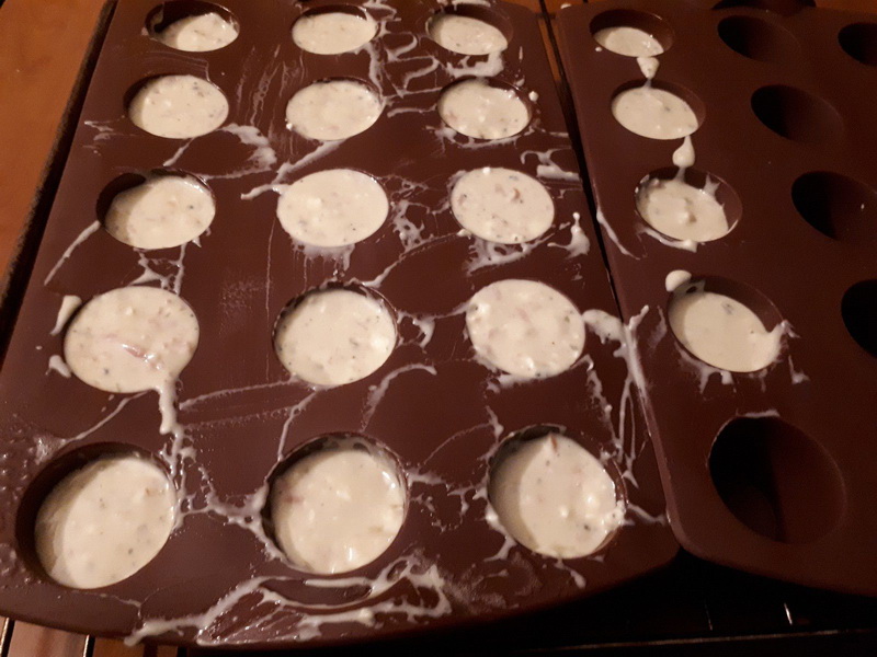 - Répartir le mélange dans des moules à muffins en silicone ou préalablement beurrés.