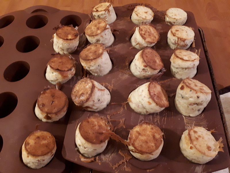 - Ajouter le jambon râpé et bien mélanger, saler poivrer, puis répartir le mélange dans des moules à muffins en silicone ou préalablement beurrés.