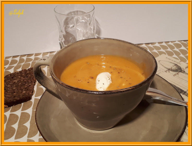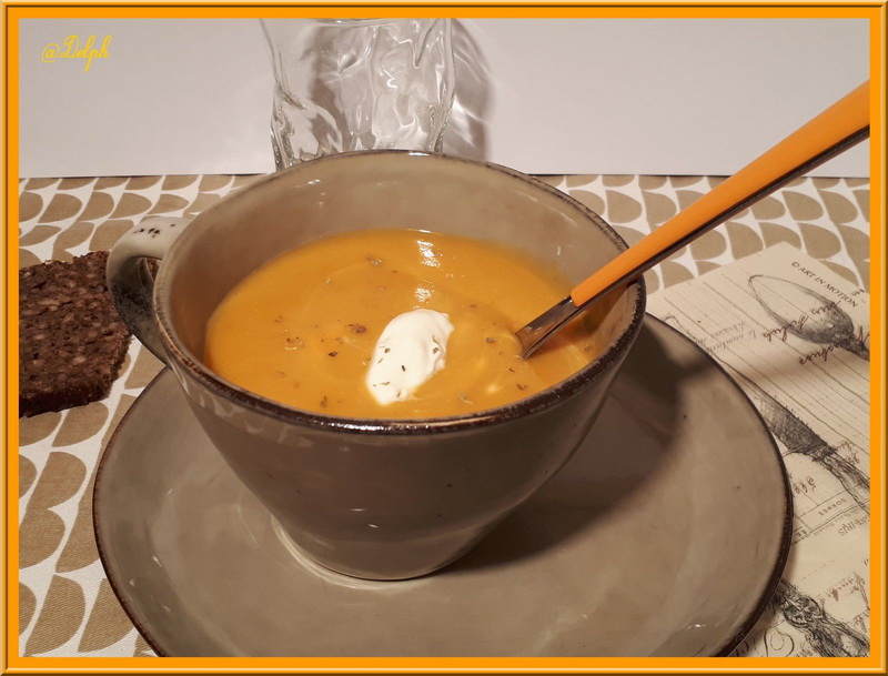 - Éplucher vos carottes et votre pommes de terre puis les laver et les couper en gros morceaux, les ajouter dans la cocotte avec l’eau, les épices, le sel et le poivre puis faire chauffer environ 25 minutes, lorsque les légumes sont bien fondants les mixer ajouter la crème fraîche puis mélanger à nouveau.
