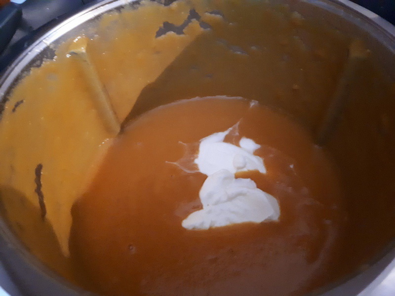 - A la sonnerie mixer 30sec de la vitesse 6 à 9, ajouter votre crème fraîche puis mixer à nouveau 20sec/vit4.