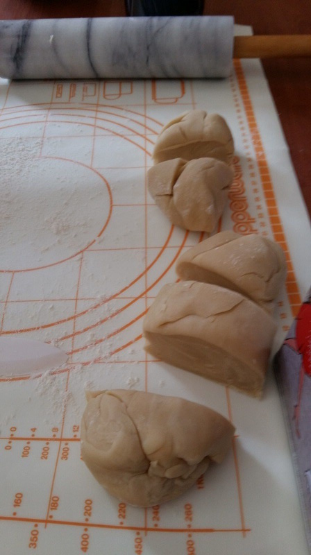 - Prélever un peu de pâte puis étalez-la avec un rouleau de pâtisserie en essayant de faire un cercle, Thibaud a utilisé un cercle de 16 cm pour les avoir tous de la même taille.