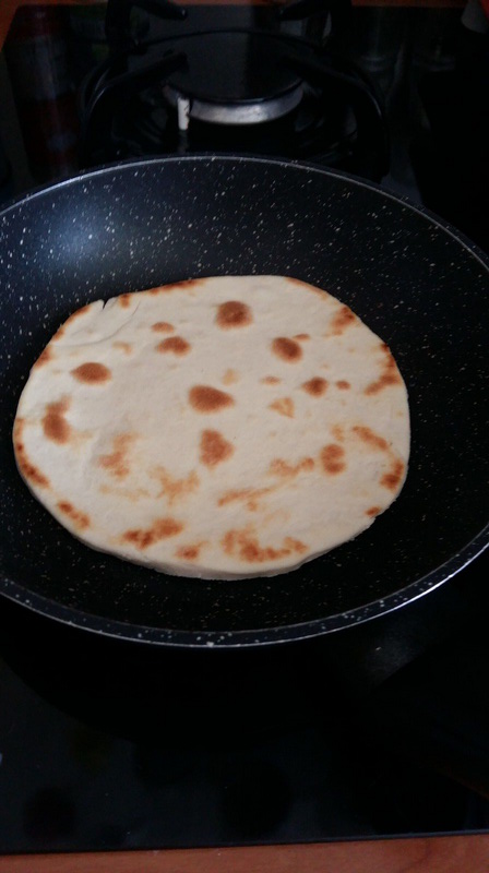 - Faire chauffer votre poêle (elle doit être assez chaude mais pas trop le but étant de faire cuire la farine uniformément) déposer un disque de pâte et laissez cuire 1 à 2 min tout en la tournant régulièrement.